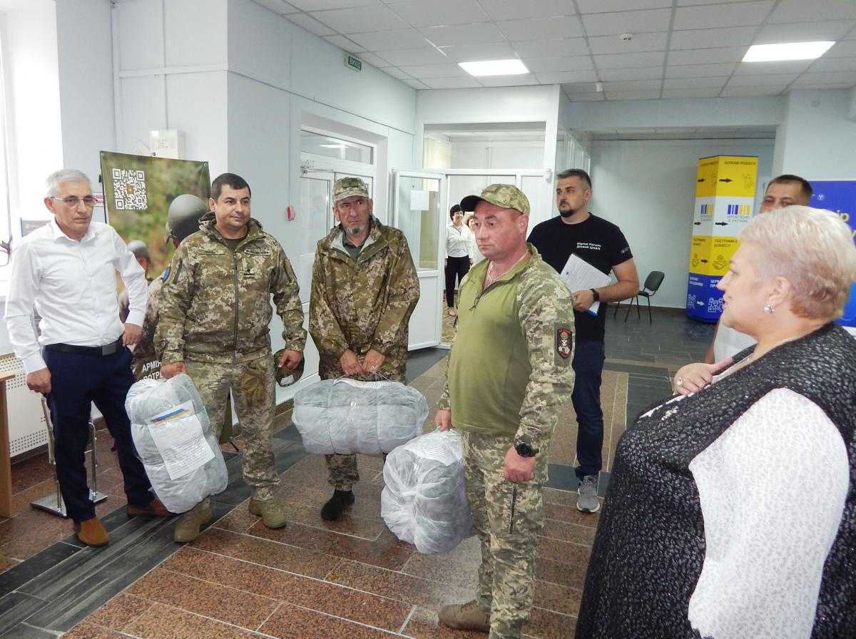 Символічно, що на завершення заходу в приміщенні Звягельської філії відбулось передавання військовим маскувальних сіток, які виготовили під час суспільно корисних робіт безробітні Брониківської сільської ради.