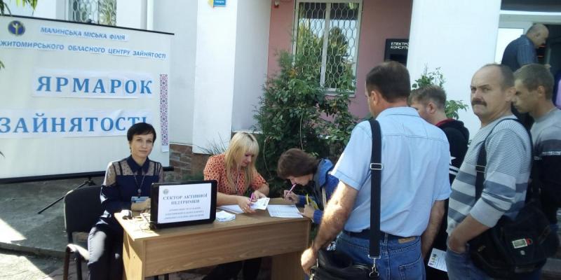 Сьогодні, 12 вересня близько сотні шукачів роботи завітали на ярмарок зайнятості, організований Малинською міською філією Житомирського обласного центру зайнятості. Для пошуку кандидатів на вакантні місця прийшли 13 представників роботодавців міста та району, які запропонували близько 50 вакансій у галузях деревообробної, каменевидобувної, папероробної галузей, сфери послуг, швейного виробництва та інших.