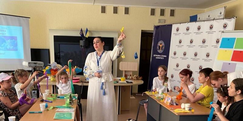 У приміщенні Житомирського обласного центру зайнятості, адже до нас завітала молодь пришкільного табору "Небесна мандрівка" Михайлівської Духовної недільної школи при Свято-Михайлівському кафедральному собору.