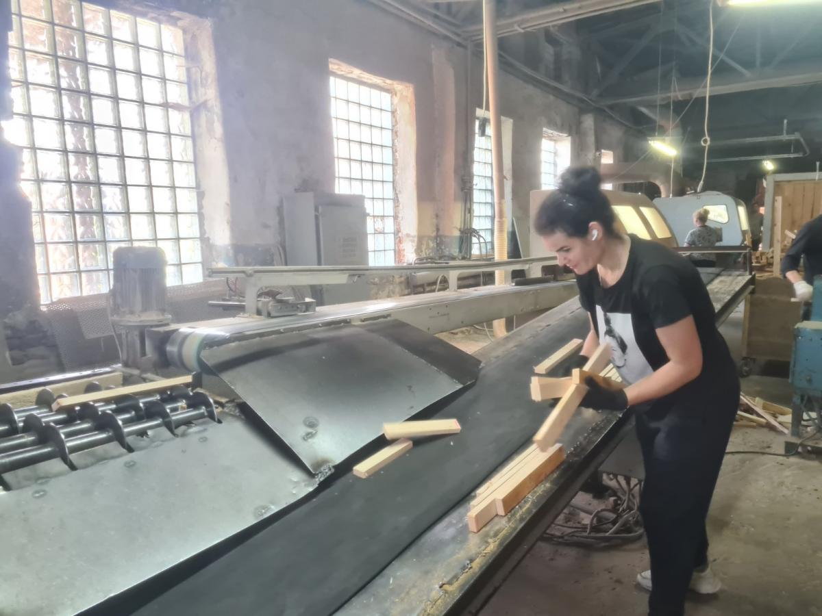 Людмила Писаренко (на фото) – одна з шести працівниць Малинської меблевої фабрики, які вивчились на верстатниць деревообробних верстатів. Раніше була сортувальницею – нелегко було фізично та й більшість часу доводилось працювати на подвір’ї за різних погодних умов. На новій роботі за верстатом – майже чотири місяці і дуже задоволена: покращились умови праці і підвищилась зарплата.