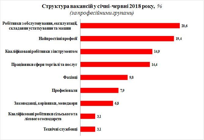Високий попит спостерігався на професіоналів та фахівців – бухгалтерів, фармацевтів, лікарів, медичних сестер, вчителів, інженерів різних галузей.