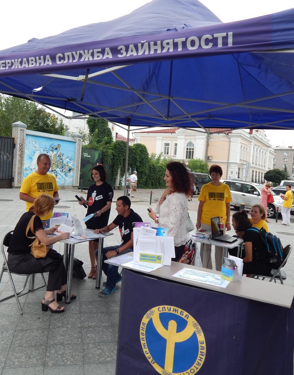Працівники служби зайнятості також провели профорієнтаційну роботу та запропонували наявні вакансії тим, хто шукає роботу.