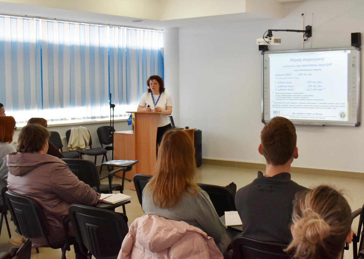 Заступниця директора Житомирської філії обласного центру зайнятості Людмила Шевчук ознайомила присутніх із можливостями програми «Власна справа» (до 1 млн грн), умовами отримання грантів і типовими помилками під час подання заявок. Також йшлося про компенсаційні програми для роботодавців, які створюють нові робочі місця та працевлаштовують ветеранів, ВПО й осіб з інвалідністю.