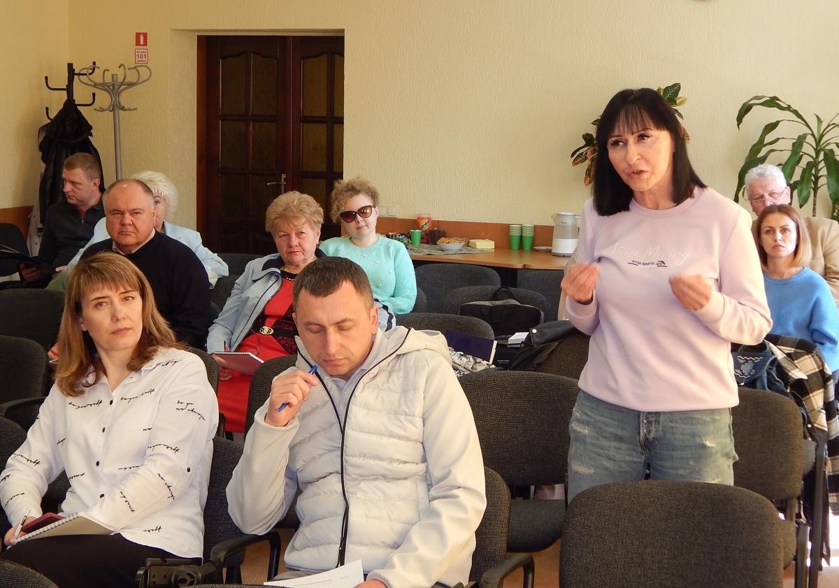 Відкриваючи зібрання, директорка обласного центру зайнятості Galina Korinna зазначила, що з серпня 2023 року діє програма фінансової підтримки роботодавців, які працевлаштовують людей з інвалідністю І і ІІ групи. За облаштування робочих місць для таких співробітників підприємство чи організація можуть отримати компенсацію у розмірах, еквівалентних 10-15 мінімальним зарплатам: до 71 000 грн – у разі працевлаштування особи з інвалідністю ІІ групи і до 106500 грн – І групи.