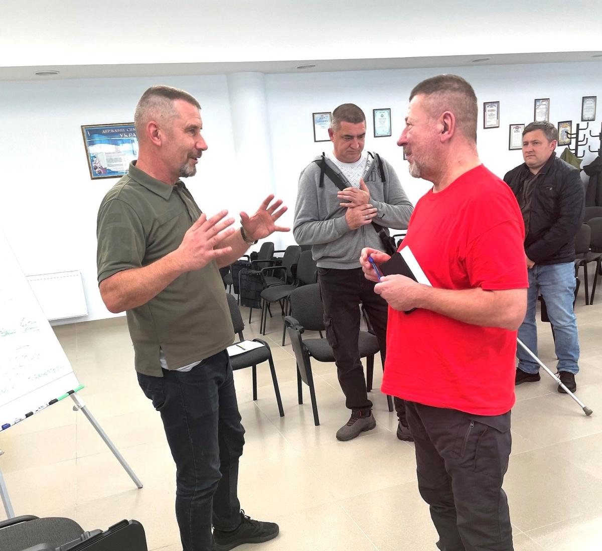 Ветеран війни, офіцер-психолог у запасі, засновник Центр реабілітації та соціалізації ветеранів «ТіХтоПройшлиКрізьВогонь» Сергій Твардовський провів з учасниками практичні заняття з різних технік психологічної допомоги.