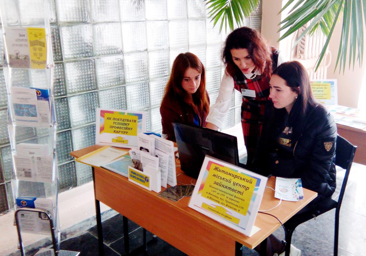 12 квітня відбувся інформаційно-просвітницький захід «Будуй кар’єру в Україні!», організований Житомирським міським центром зайнятості для випускників та студентів Житомирського торговельно-економічного коледжу Київського національного торговельно-економічного університету та близько 20 крупних компаній, які працюють у регіоні.