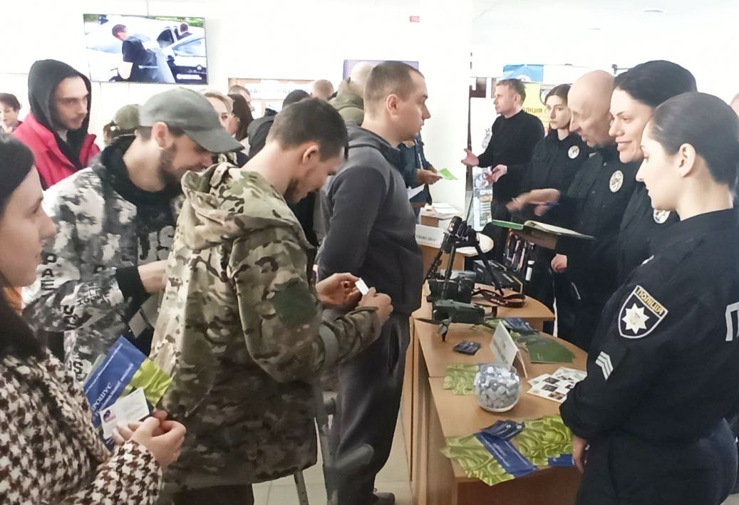 Окремий інтерес викликали інтерактивні локації: демонстрації роботи кінолога зі службовим собакою та криміналіста із професійним обладнанням. Поруч працювали фахівці із супроводу ветеранів, представники громадських організацій і фондів – ті, хто допомагає пройти непростий шлях адаптації.