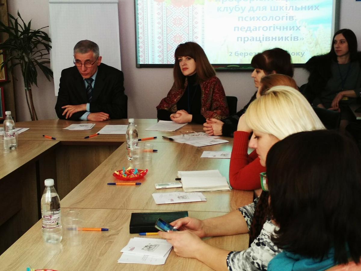 2 березня відбулося перше організаційне засідання круглого столу зі шкільними психологами та соціальними педагогами міських загальноосвітніх навчальних закладів за участі директора Новоград-Волинського міського центру зайнятості Віктора Сербіна та головного спеціаліста Управління освіти і науки Новоград-Волинської міської ради Тетяни Балаушко на тему «Діяльність ресурсного профорієнтаційного клубу для шкільних психологів, педагогічних працівників».